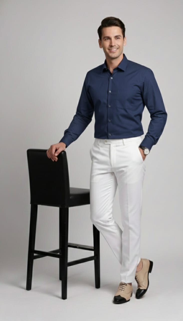 Navy Blue Linen Formal Shirt for Men – Trendy Office & Smart Casual Wear